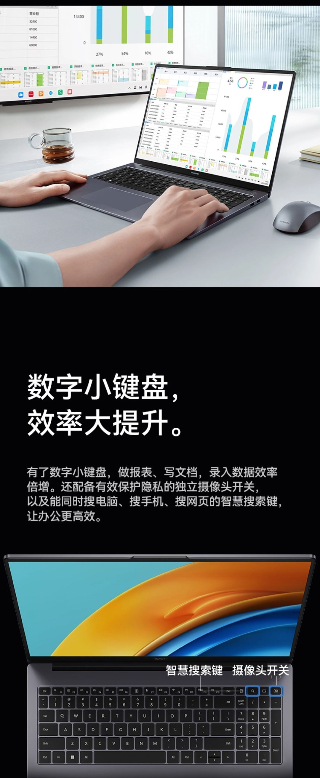 独立数字小键盘 效率大提升,16''护眼全面屏,13代酷睿标压处理器,超级终端